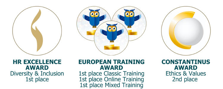 Award-Winning Training Excellence · HR Excellence Award · European Training Award Gold · Constantinus Award